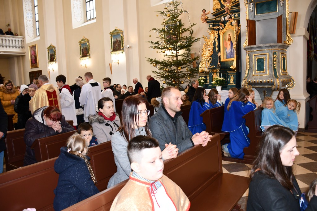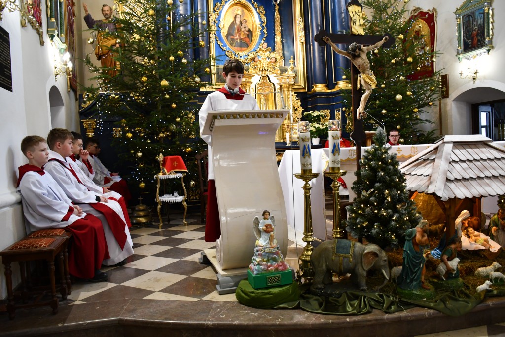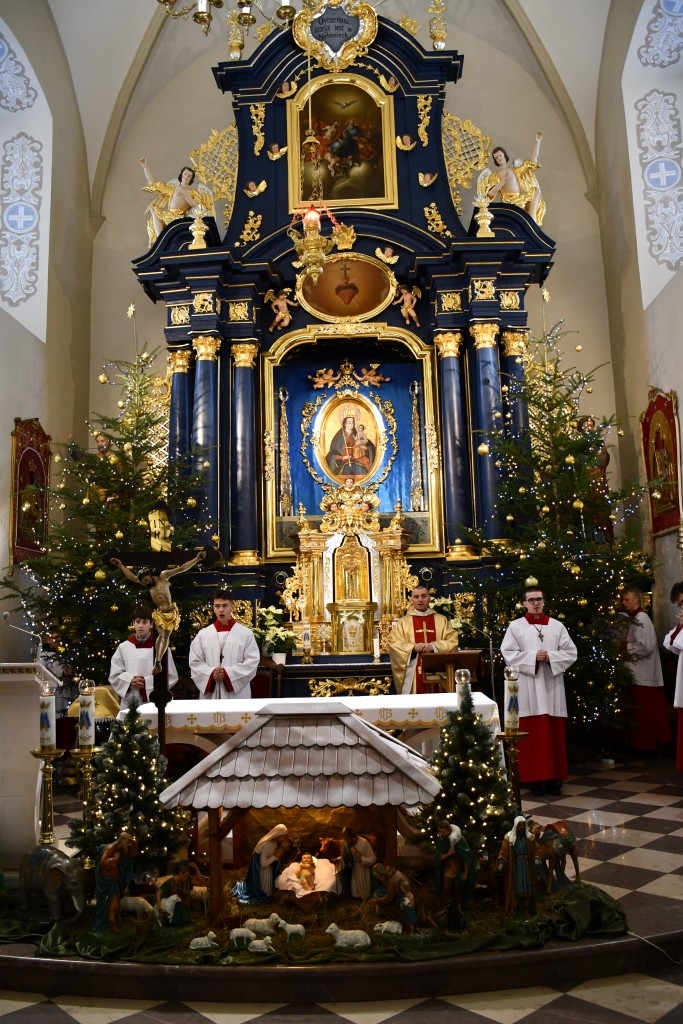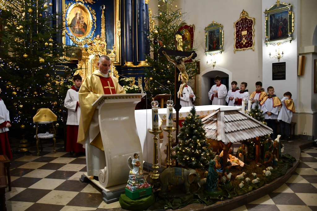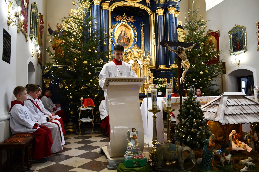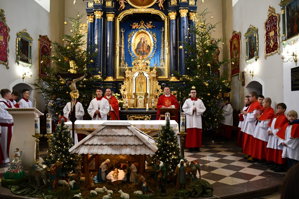 Tegoroczne Święta Bożego Narodzenia w naszej parafii upłynęły pod znakiem głębokiej wiary oraz silnego przywiązania do beskidzkich tradycji. Mieszkańcy oraz licznie przybyli goście uczestniczyli w wydarzeniach, które na długo zapadną w pamięć. Najważniejszym momentem obchodów była uroczysta Pasterka odprawiona o północy w Sanktuarium Matki Bożej Jaśliskiej. Świątynia, będąca duchowym sercem regionu, wypełniła się wiernymi, którzy przybyli, by powitać Nowonarodzonego Chrystusa przed cudownym obrazem Królowej Nieba i Ziemi. Wyjątkowy charakter tej nocy nadał koncert kolęd w wykonaniu zespołu BESKID, który rozpoczął się o godzinie 23:00. Tradycyjne brzmienia i ludowe wykonania najpiękniejszych polskich kolęd wprowadziły zgromadzonych w stan radosnego oczekiwania. W dniu św. Szczepana, 26 grudnia 2025 roku, zgodnie z wieloletnią tradycją, podczas każdej Mszy Świętej w Sanktuarium w Jaśliskach oraz w kościele filialnym w Woli Niżnej miało miejsce uroczyste poświęcenie owsa. Świąteczna atmosfera przeniosła się również na deski sceny Gminnego Ośrodka Kultury i Czytelnictwa w Jaśliskach. W niedzielę, 28 grudnia 2025 roku, odbył się spektakl pt. „Tradycyjna polska Wigilia”. Występ został przygotowany przez uczniów Szkoły Podstawowej w Jaśliskach, którzy pod czujnym okiem siostry Aleksandry z wielkim zaangażowaniem przypomnieli dawne obyczaje i symbole wigilijnego wieczoru. Młodzi aktorzy zachwycili publiczność autentycznością, a ich trud został nagrodzony gromkimi brawami. Po spektaklu raz jeszcze można było poczuć magię muzyki podczas wspólnego kolędowania z zespołem BESKID.