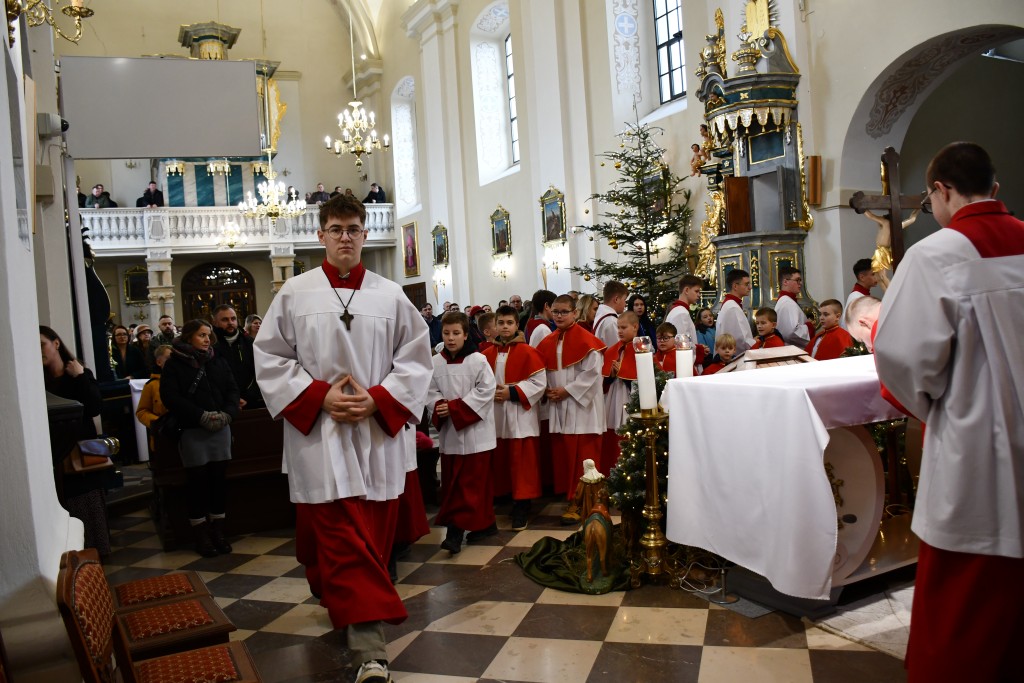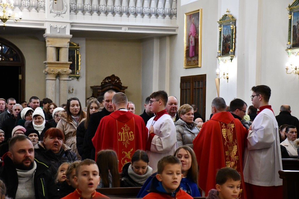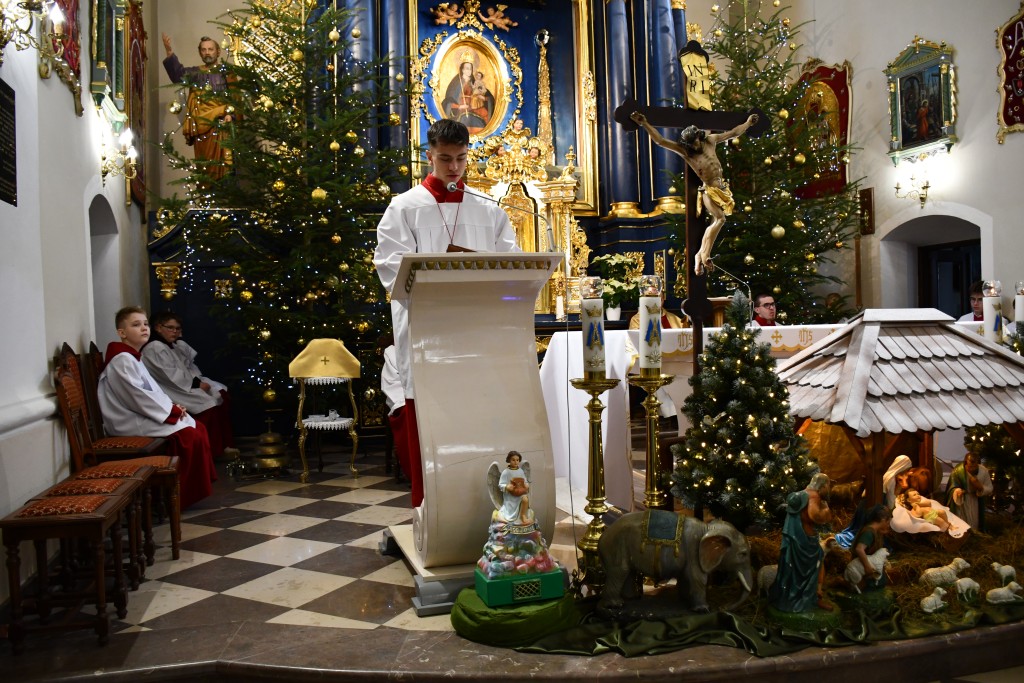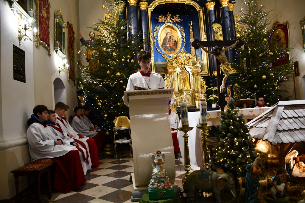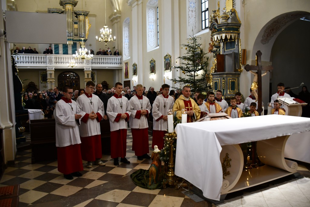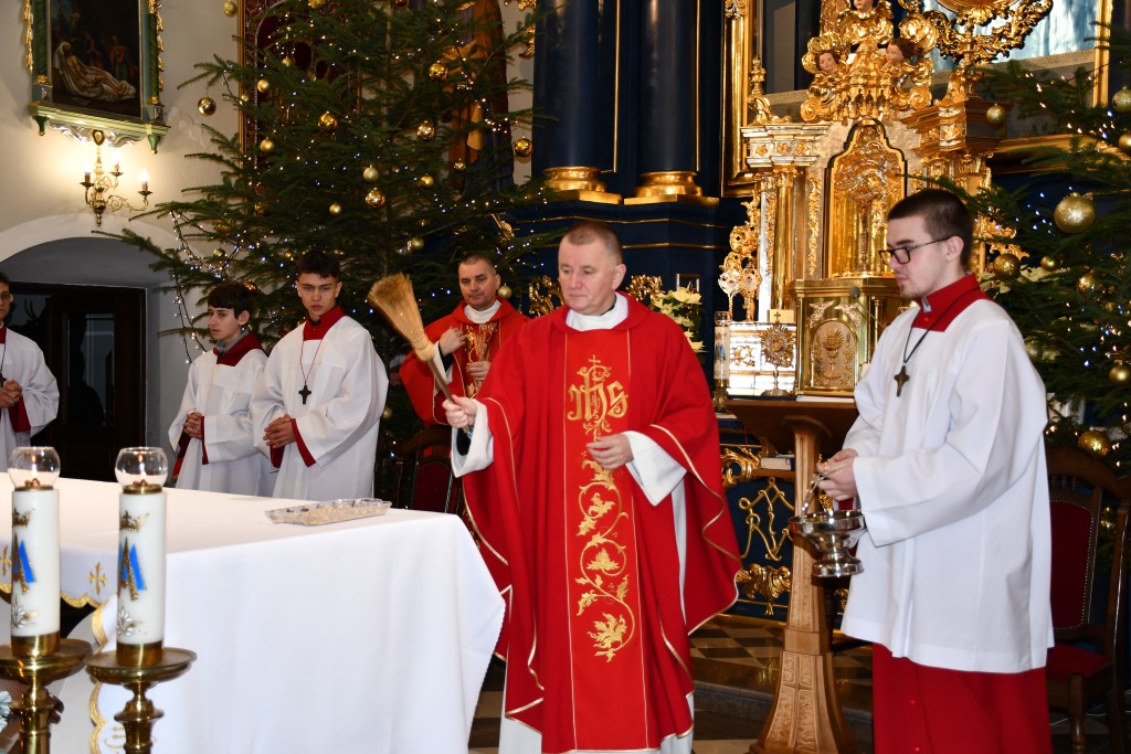 Tegoroczne Święta Bożego Narodzenia w naszej parafii upłynęły pod znakiem głębokiej wiary oraz silnego przywiązania do beskidzkich tradycji. Mieszkańcy oraz licznie przybyli goście uczestniczyli w wydarzeniach, które na długo zapadną w pamięć. Najważniejszym momentem obchodów była uroczysta Pasterka odprawiona o północy w Sanktuarium Matki Bożej Jaśliskiej. Świątynia, będąca duchowym sercem regionu, wypełniła się wiernymi, którzy przybyli, by powitać Nowonarodzonego Chrystusa przed cudownym obrazem Królowej Nieba i Ziemi. Wyjątkowy charakter tej nocy nadał koncert kolęd w wykonaniu zespołu BESKID, który rozpoczął się o godzinie 23:00. Tradycyjne brzmienia i ludowe wykonania najpiękniejszych polskich kolęd wprowadziły zgromadzonych w stan radosnego oczekiwania. W dniu św. Szczepana, 26 grudnia 2025 roku, zgodnie z wieloletnią tradycją, podczas każdej Mszy Świętej w Sanktuarium w Jaśliskach oraz w kościele filialnym w Woli Niżnej miało miejsce uroczyste poświęcenie owsa. Świąteczna atmosfera przeniosła się również na deski sceny Gminnego Ośrodka Kultury i Czytelnictwa w Jaśliskach. W niedzielę, 28 grudnia 2025 roku, odbył się spektakl pt. „Tradycyjna polska Wigilia”. Występ został przygotowany przez uczniów Szkoły Podstawowej w Jaśliskach, którzy pod czujnym okiem siostry Aleksandry z wielkim zaangażowaniem przypomnieli dawne obyczaje i symbole wigilijnego wieczoru. Młodzi aktorzy zachwycili publiczność autentycznością, a ich trud został nagrodzony gromkimi brawami. Po spektaklu raz jeszcze można było poczuć magię muzyki podczas wspólnego kolędowania z zespołem BESKID.