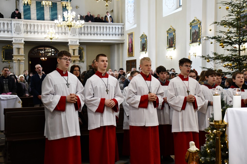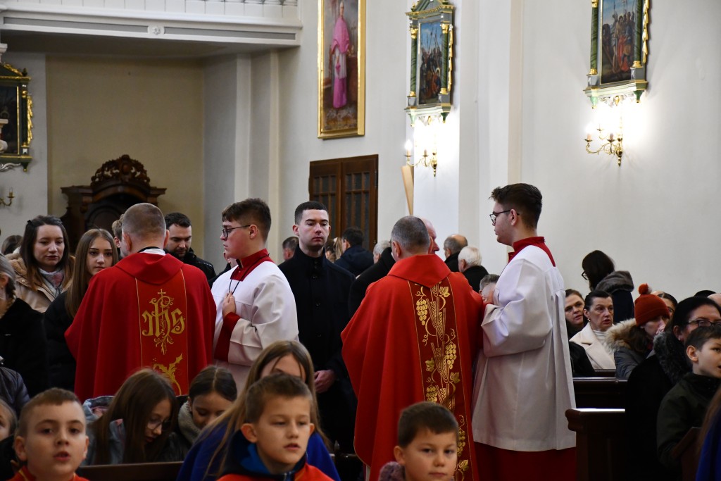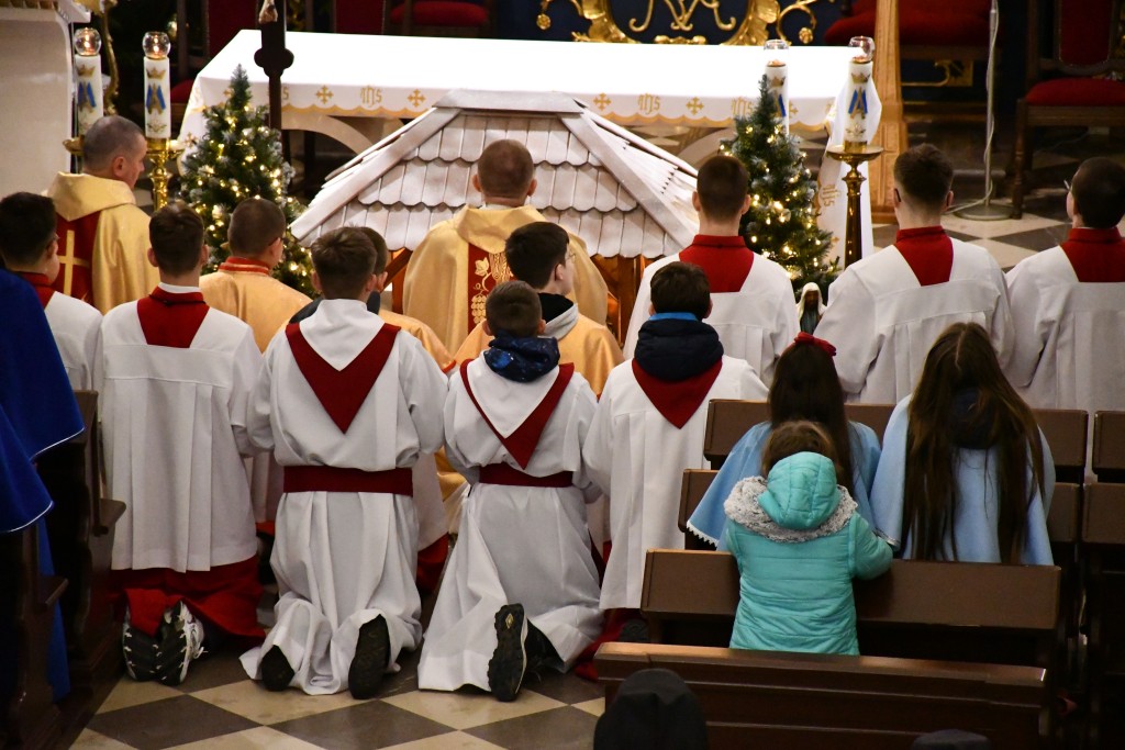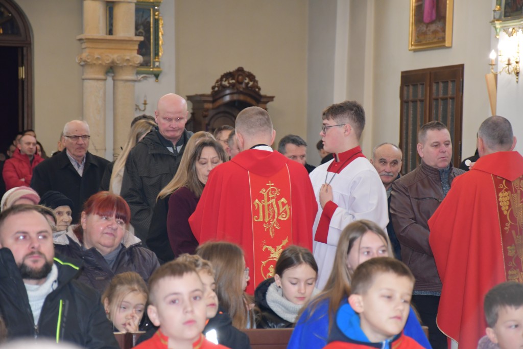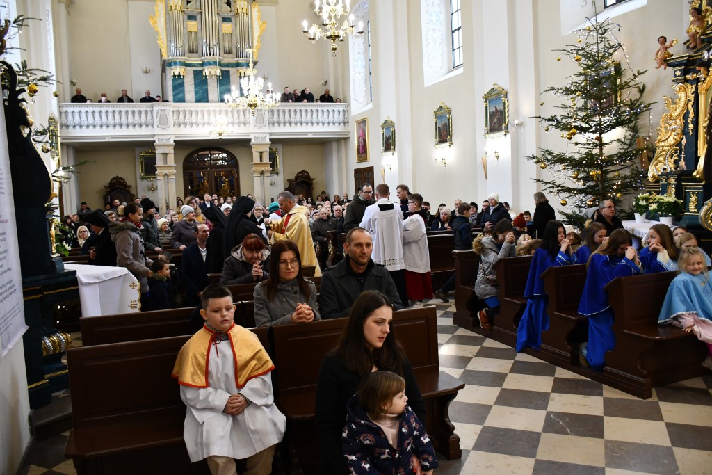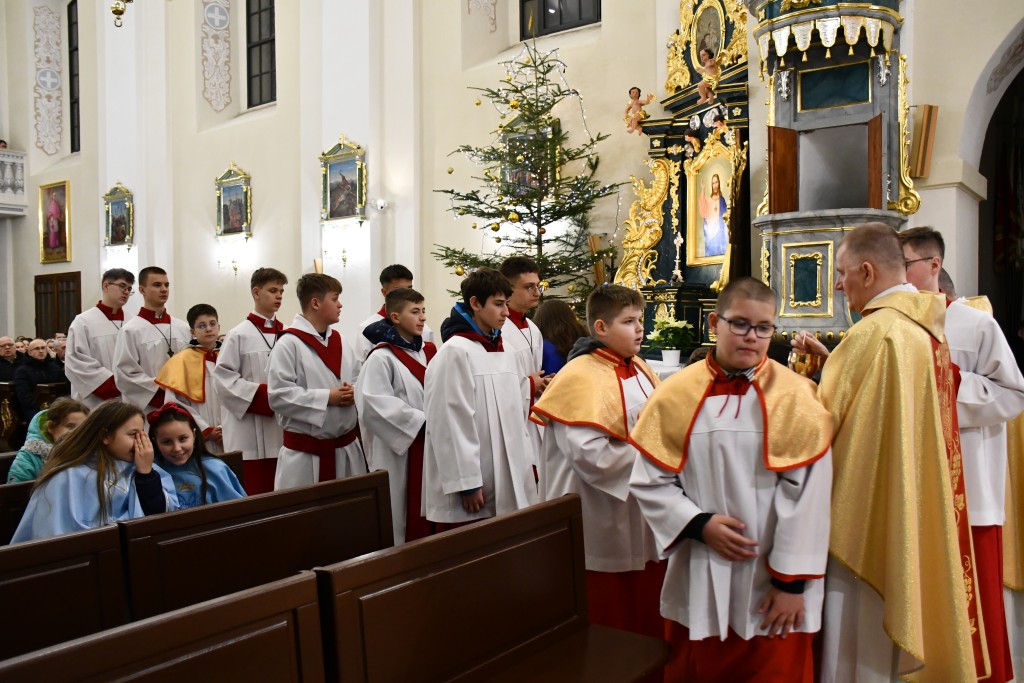 Tegoroczne Święta Bożego Narodzenia w naszej parafii upłynęły pod znakiem głębokiej wiary oraz silnego przywiązania do beskidzkich tradycji. Mieszkańcy oraz licznie przybyli goście uczestniczyli w wydarzeniach, które na długo zapadną w pamięć. Najważniejszym momentem obchodów była uroczysta Pasterka odprawiona o północy w Sanktuarium Matki Bożej Jaśliskiej. Świątynia, będąca duchowym sercem regionu, wypełniła się wiernymi, którzy przybyli, by powitać Nowonarodzonego Chrystusa przed cudownym obrazem Królowej Nieba i Ziemi. Wyjątkowy charakter tej nocy nadał koncert kolęd w wykonaniu zespołu BESKID, który rozpoczął się o godzinie 23:00. Tradycyjne brzmienia i ludowe wykonania najpiękniejszych polskich kolęd wprowadziły zgromadzonych w stan radosnego oczekiwania. W dniu św. Szczepana, 26 grudnia 2025 roku, zgodnie z wieloletnią tradycją, podczas każdej Mszy Świętej w Sanktuarium w Jaśliskach oraz w kościele filialnym w Woli Niżnej miało miejsce uroczyste poświęcenie owsa. Świąteczna atmosfera przeniosła się również na deski sceny Gminnego Ośrodka Kultury i Czytelnictwa w Jaśliskach. W niedzielę, 28 grudnia 2025 roku, odbył się spektakl pt. „Tradycyjna polska Wigilia”. Występ został przygotowany przez uczniów Szkoły Podstawowej w Jaśliskach, którzy pod czujnym okiem siostry Aleksandry z wielkim zaangażowaniem przypomnieli dawne obyczaje i symbole wigilijnego wieczoru. Młodzi aktorzy zachwycili publiczność autentycznością, a ich trud został nagrodzony gromkimi brawami. Po spektaklu raz jeszcze można było poczuć magię muzyki podczas wspólnego kolędowania z zespołem BESKID.